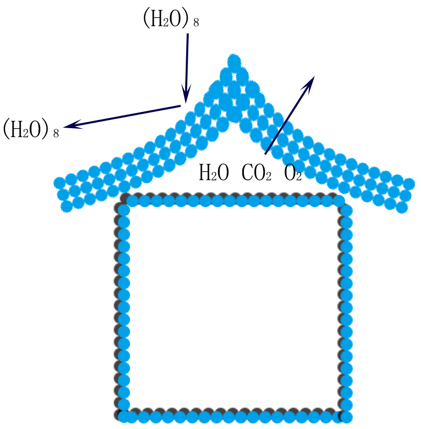 液態(tài)的水由于存在較強的分子問氫鍵作用,因此在常溫下其締臺分子的分子式約為(H2O)8,而氣態(tài)的水分子則較小,其分子式為H20。透氣膜能透過較小體積的水蒸氣分子H20 ,卻不足以通過體積較大的液態(tài)締合水分子(H2O)8,故其具有透氣而不漏水的特點從而被廣泛應(yīng)用于各行各業(yè)。