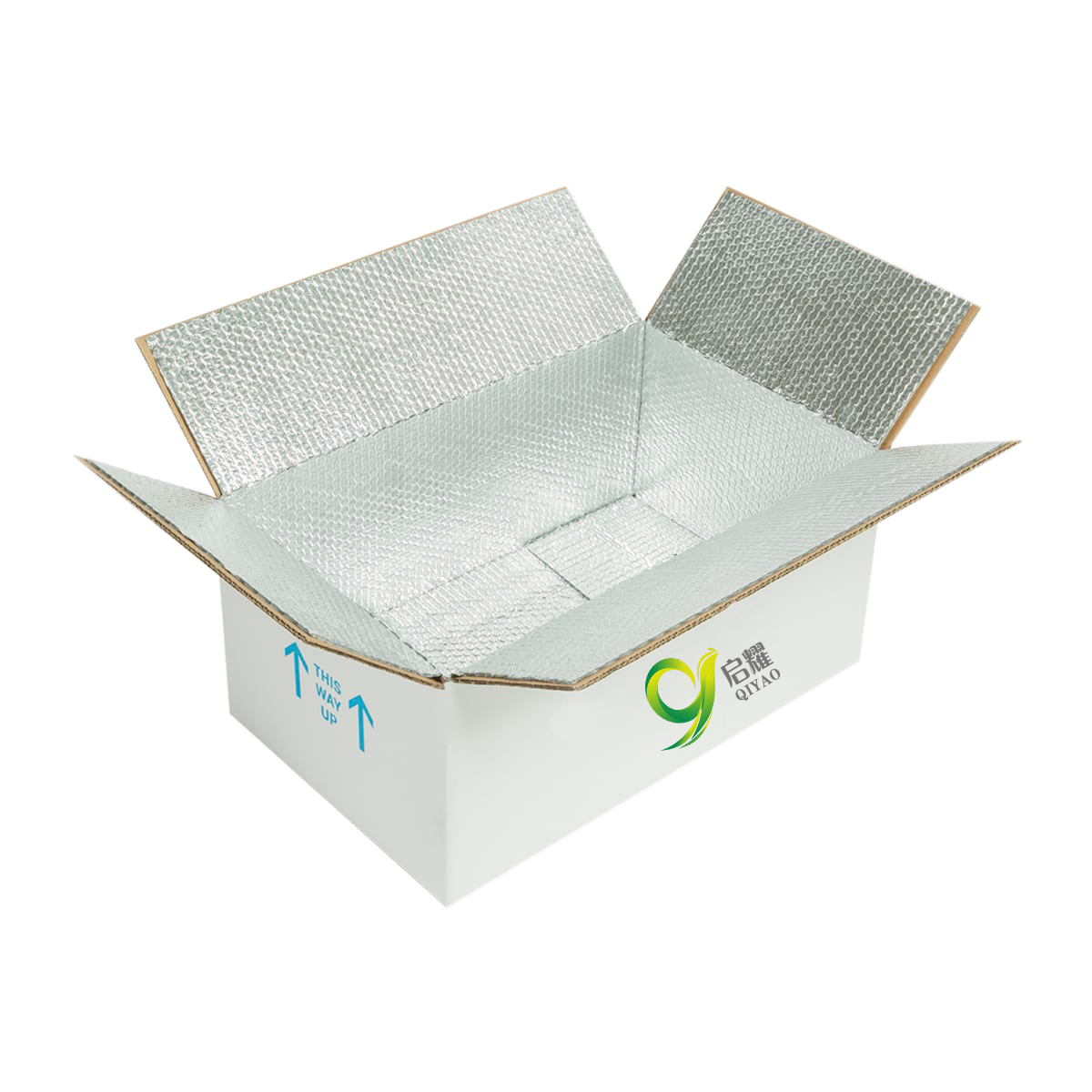 2.在保溫層的內(nèi)外壁都附上鍍鋁膜,打造了一款銀光閃耀的防水型保溫紙箱,彌補(bǔ)了傳統(tǒng)紙箱被水或者蒸汽浸濕而損壞箱體的缺陷,保證了箱內(nèi)物品的原始特性。傳統(tǒng)紙箱在運(yùn)輸冷凍食品時(shí),有著致命缺陷,由于冷凍食品從冷庫中取出遇到外界熱空氣會(huì)產(chǎn)生冷凝水,泡濕紙箱,導(dǎo)致紙箱變軟甚至破損。而優(yōu)冷保溫紙箱內(nèi)外層鋁箔膜具有防水功能,保溫層為具有耐濕功能的橡塑發(fā)泡材料,不會(huì)弄濕箱體導(dǎo)致箱體破損。